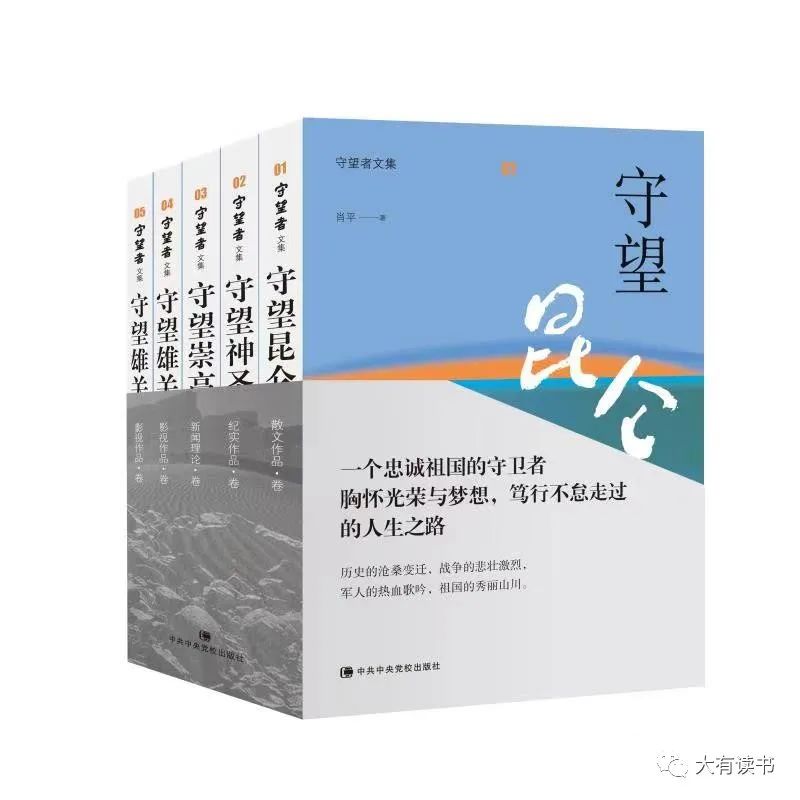 《守望者文集》共五册,洋溢着强烈的时代气息,展示着鲜明的时代精神和时代风貌。第一册《守望昆仑》是散文作品集,书中的《雪域之魂》《古榕作证》等作品先后在全国获奖。作品里历史的沧桑变迁、山河的雄伟壮丽,无不凝聚着美的精神、美的情操、美的境界。第二册《守望神圣》是纪实作品集,作品里记叙的先进集体、英模人物的事迹感人至深、励志育人,《凝眸1997》等作品先后在全国获奖。第三册《守望崇高》是新闻理论集,书中的全国全军重大典型宣传经验和新闻传播策略艺术的探索,被各级宣传部门和大学新闻系用作参考教材。第四五册《守望雄关》是影视作品集,以电视纪录片为代表的作品大都在中央电视台播出,《中华雄关》《边关军魂》《永恒的雕像》《世纪大阅兵》等影视片先后在全国获奖。