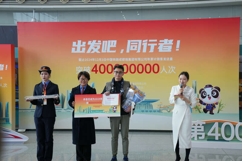 中国青年报客户端讯(朱琳琳 简艳 中青报·中青网记者 王鑫昕)12月3日,随着旅客何平走进成都东站,乘坐G8613次列车出发前往重庆,他成为了今年中国铁路成都局集团有限公司(以下简称“成都局集团公司”)的第4亿名旅客。当天,成都局集团公司年旅客发送量首次突破4亿人次。