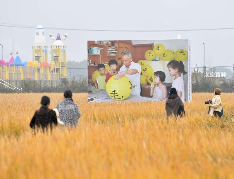 展览分为三大展区十大主题,其中,草坪展区展现“咱村首张全村福”“文化特派员和Ta的朋友们”“一纸证书读懂乡村变化”等专题作品。让人眼前一亮的是稻田展区,精选的数十张大幅美图在金灿灿稻谷的映衬下,吸引村民和游客纷纷打卡拍照。