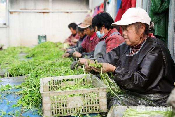 “现在水芹菜已经上市了,已经给家人们挂上了小黄车……”在宿迁宿豫区来龙镇侍岭社区水芹种植基地,社区党委书记蒋竹清亲自上场,在直播间向网友推介当地特色农产品——水芹。短短半小时,成功销售30单。蒋竹清说,水芹销售预计每年可为村庄增加集体收入10万元。