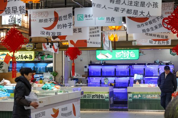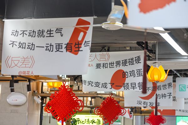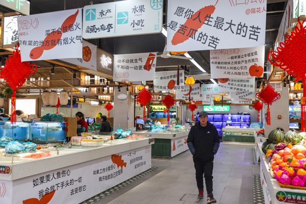 2024年12月16日,杭州东山农贸市场更名为“东山弄市集”,这处西湖边的菜市场升级成为社区商业综合体,还挂满了趣味十足的“哲学标语”,部分来自著名文学作品,部分征集自网友,金句与果蔬肉鱼等商品相关,引得不少顾客会心一笑。