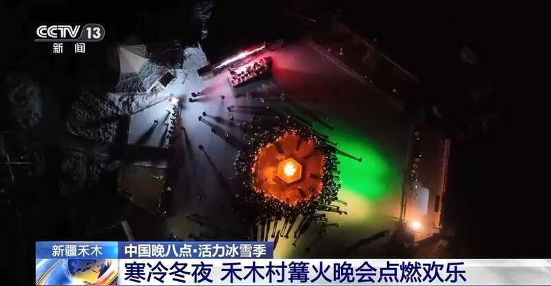 寒冷冬夜 禾木村篝火晚会点燃欢乐