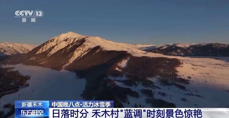 总台记者 刘飞飞:来到禾木的游客,不仅可以体验篝火晚会、品尝美食,还可以欣赏美丽的雪景。这里的日落也非常惊艳,每个晴好的日子,随着太阳的缓缓落下,天地山之间冷色和暖色过渡时,整个天空会呈现一种静谧的蓝色,禾木村进入了“蓝调时刻”。很多游客会提前爬上观日落的平台,静静等待“蓝调时刻”的到来,用相机记录下这短暂的美好。除了在村庄里欣赏落日美景,在禾木村几公里外的吉克普林滑雪场也是欣赏夕阳的绝佳地,很多游客或是登上海拔2800米的云霄峰感受落日余晖,或是一边滑雪一边追逐夕阳。