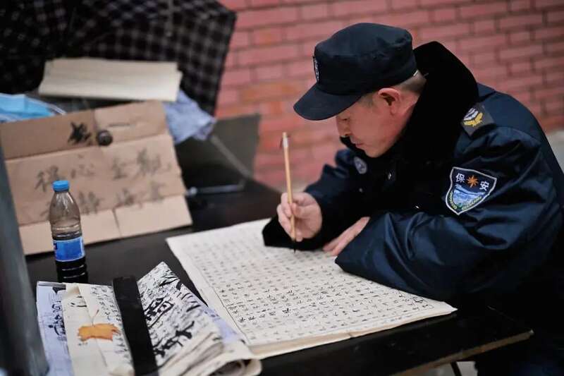 一抹车水马龙间屏息凝神书写的身影