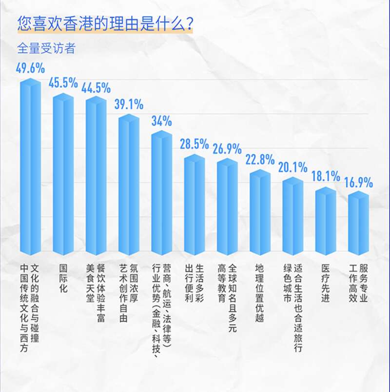 近日,香港特别行政区政府驻北京办事处(简称香港驻京办)联合腾讯新闻发起的《2024爱上香港》问卷调研结果公布,用数据诠释了香港的魅力和内地民众爱上香港的理由。