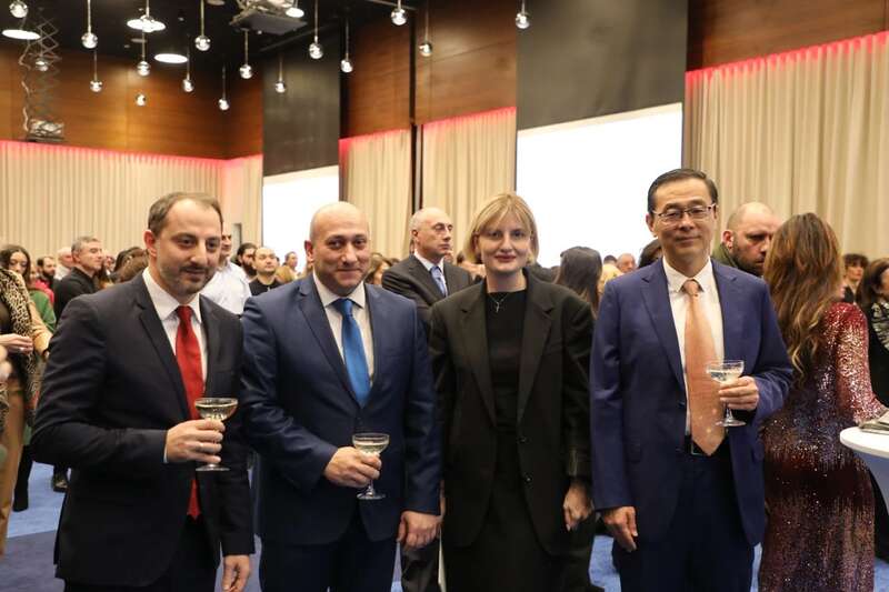 12月23日,第比利斯,中国驻格鲁吉亚大使周谦(右一)与格鲁吉亚政界友好人士共同参加新年招待会。中国驻格鲁吉亚大使馆供图