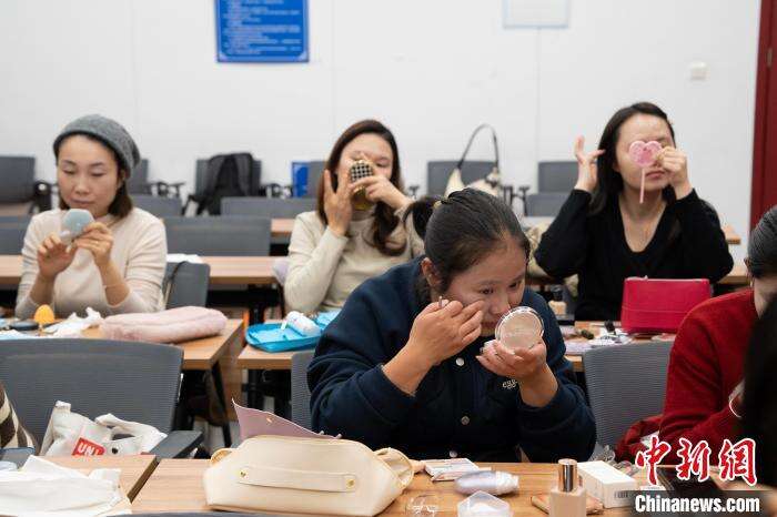 匆匆啃了几口煎饼对付晚饭后,在浙江杭州工作的“90后”陈雅贤有条不紊地支起化妆镜、将包里的化妆工具一字排开,准备上课。“我下班就赶来夜校了,想占个前排的好位置,看得清楚。”