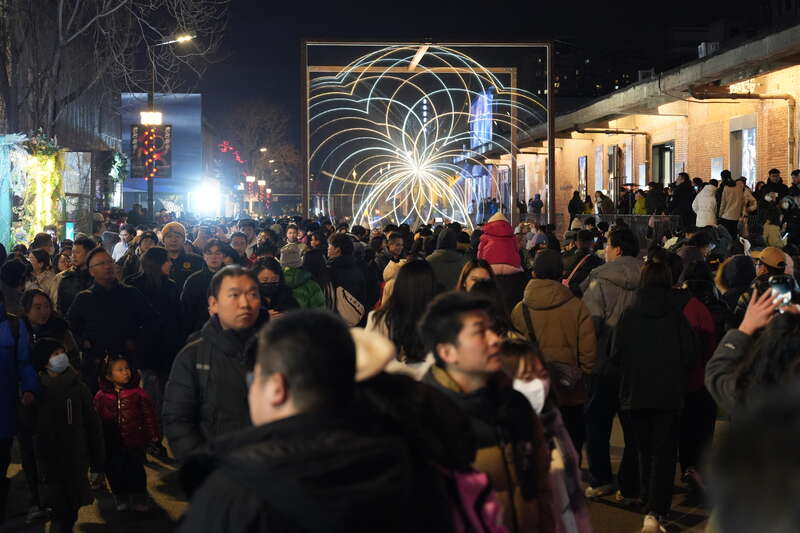 2024年12月31,园区内火车头广场人潮涌动,众多游客纷纷前来观赏装置艺术,现场气氛热烈 中青报·中青网见习记者 王梓元/摄