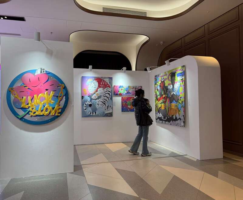 展览由万达电影董事长兼总裁陈祉希策展,现场展出了歪歪、陈建周、张超级、任萌等当代艺术家的70件作品。这些作品既沉淀了传统民俗的吉祥文化,也包含了先锋、时尚、机甲等元素,诠释着当代年轻人的希冀、爱和遐思。本次展览为期3个月,来访游客均可免费参观。