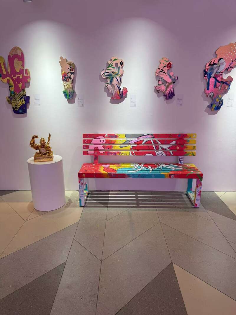 过去,观众在影院座椅上欣赏电影。现在,椅子也击穿了“次元壁”,供人们闲暇休憩和观照生活。活动现场,策展人和艺术家共同在一张素白椅子上进行了涂鸦,此后的访客可以在此基础上继续创作,使其最终成为“银幕无边界”的实体象征。
