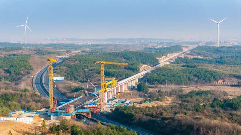 上述特大桥桥1—140m系杆拱全长143.2m,浇筑过程中,为减少冬季气温过低对混凝土浇筑的影响,项目管理团队强化保温措施,保障浇筑质量。此外,连续梁上跨交通繁忙的天潜高速,为确保工程质量,安徽省合马高速铁路股份有限公司、合肥铁路枢纽指挥部(宁安公司)协同中铁上海工程局三公司巢马城际铁路5标项目科学制定施工方案,实行全过程标准化作业管理,确保施工过程中公路运输畅通和施工作业安全。