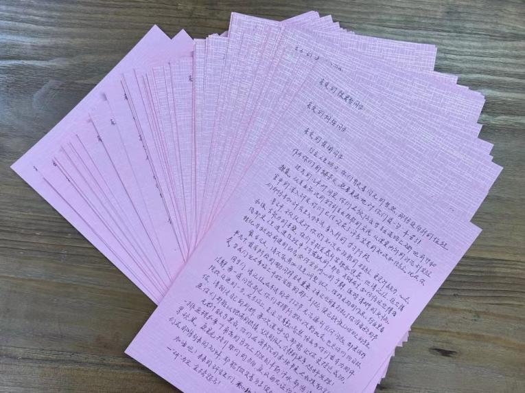 临近考试,学院为所有考生送上了一份“爱心礼包”,里面有来自低年级学弟学妹和辅导员的鼓励信。“在备考的一年里,我受到了许多人的帮助——学院老师的指导与鼓励、已经上岸的学长学姐热心的帮助、家人的支持以及来自一起考研的朋友的鼓励,这些都是我坚持的动力,也是我备考一年中最珍贵的回忆。”杨洋说。