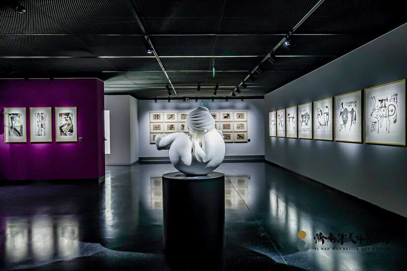 位于济南泉城广场的韩美林艺术馆,建筑面积约13300平方米,共设10个展厅,包括序厅、文献展厅、雕塑展厅、公共教育厅、绘画展厅、设计展厅、数字展厅、书法展厅、综合展厅、临展厅,展出作品近1300件。