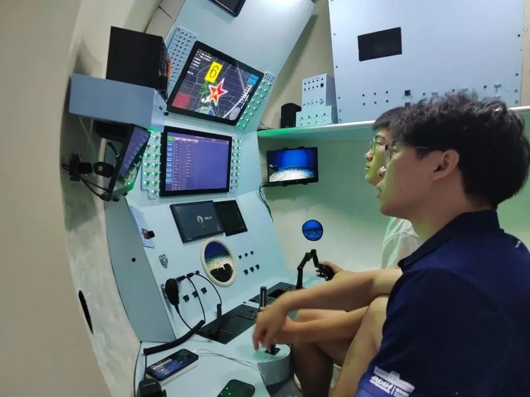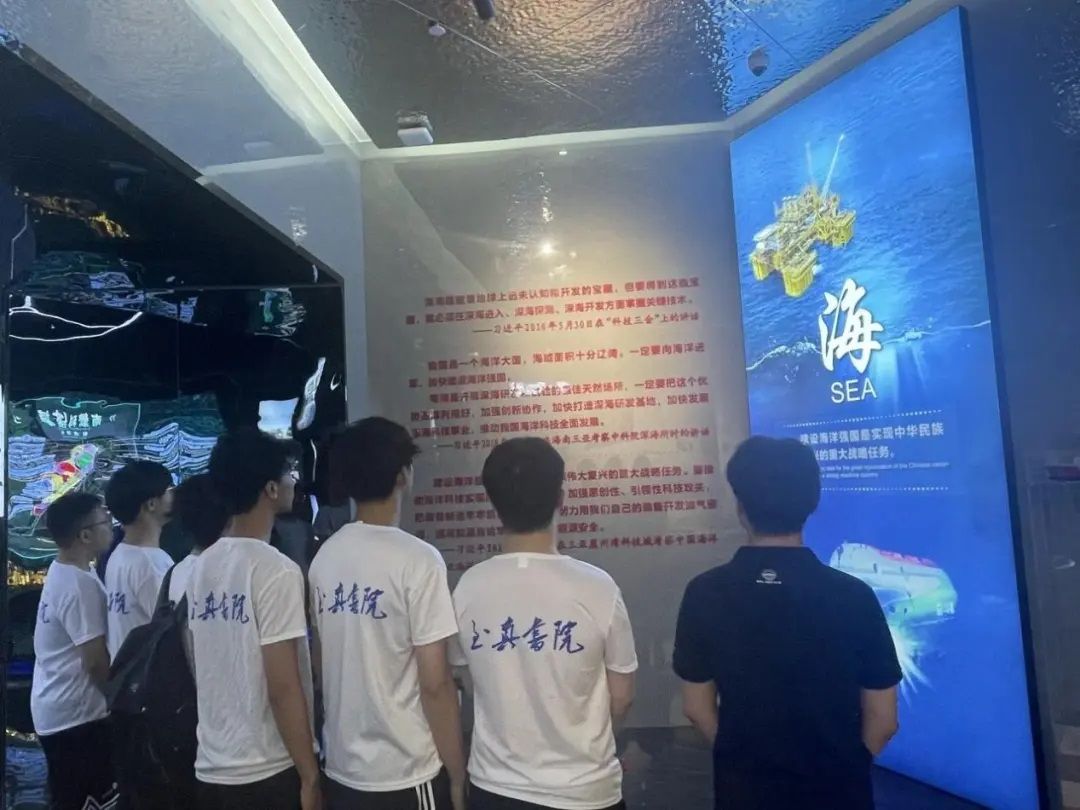 至真书院的实践队员们在海南崖州湾科技城的深海科普馆内,观看“深海勇士”号的1:1模型,了解领悟载人深潜精神内涵。