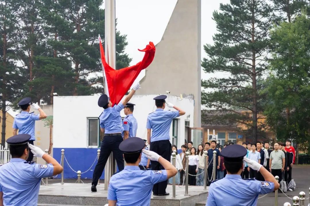 “国旗冉冉升起的时候,我只觉得心头涌上一股热流,清澈的爱只为中国在此刻变得具象化起来”。在漠河观音山边境检查站,工学书院的实践队员们与边境移民管理警察共同沐浴在清晨的第一缕阳光下,目送五星红旗在祖国最北端的上空飘扬。