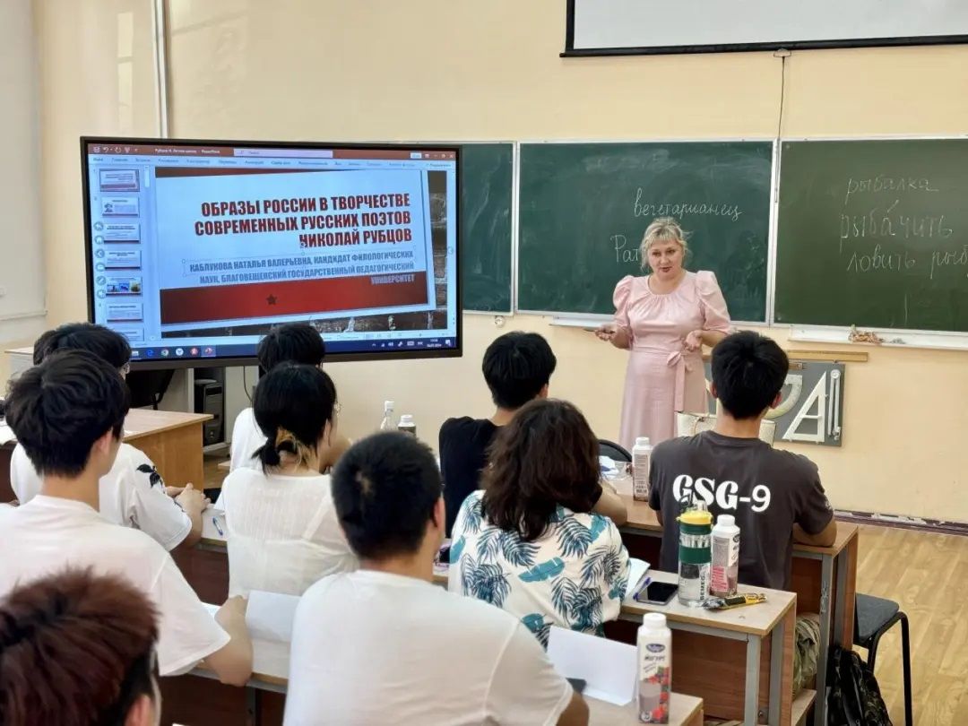 俄罗斯实践团队在布拉戈维申斯克国立师范大学,进行56学时的俄语强化课程学习,系统学习俄语语音基础、口语训练、语法专项等内容,提高学生俄语语言文字应用能力,课程设置针对性强、覆盖面广、实用性高,紧贴留学生活实际。