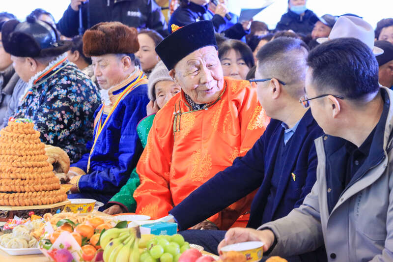 此外,村晚现场还为嘎查年龄最大的92岁老人曹布道换上了量身定做的新装,为非遗传承人颁发证书,并奖励2024年考入大学的学子,鼓励他们继续努力,为家乡争光。