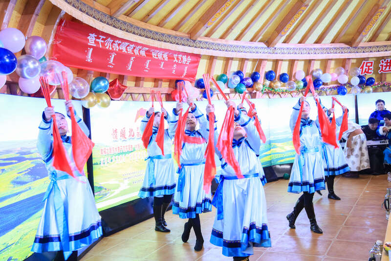 当晚6时30分,蒙古包内灯火通明、欢声笑语,浓厚的节日氛围弥漫全场。伴随着悠扬的马头琴声,群舞《万丽》精彩亮相,正式拉开了村晚的序幕。牧民们身着节日盛装,脸上洋溢着幸福的笑容,他们挥动着手中的荧光棒,用热烈的掌声和欢呼声表达着对新年的美好祝愿。