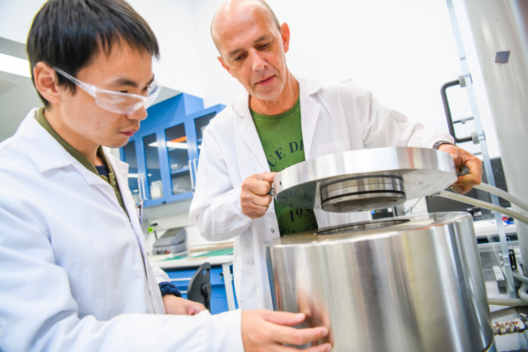 ▲陈春飞教授和Slava博士正在开展高温高压实验