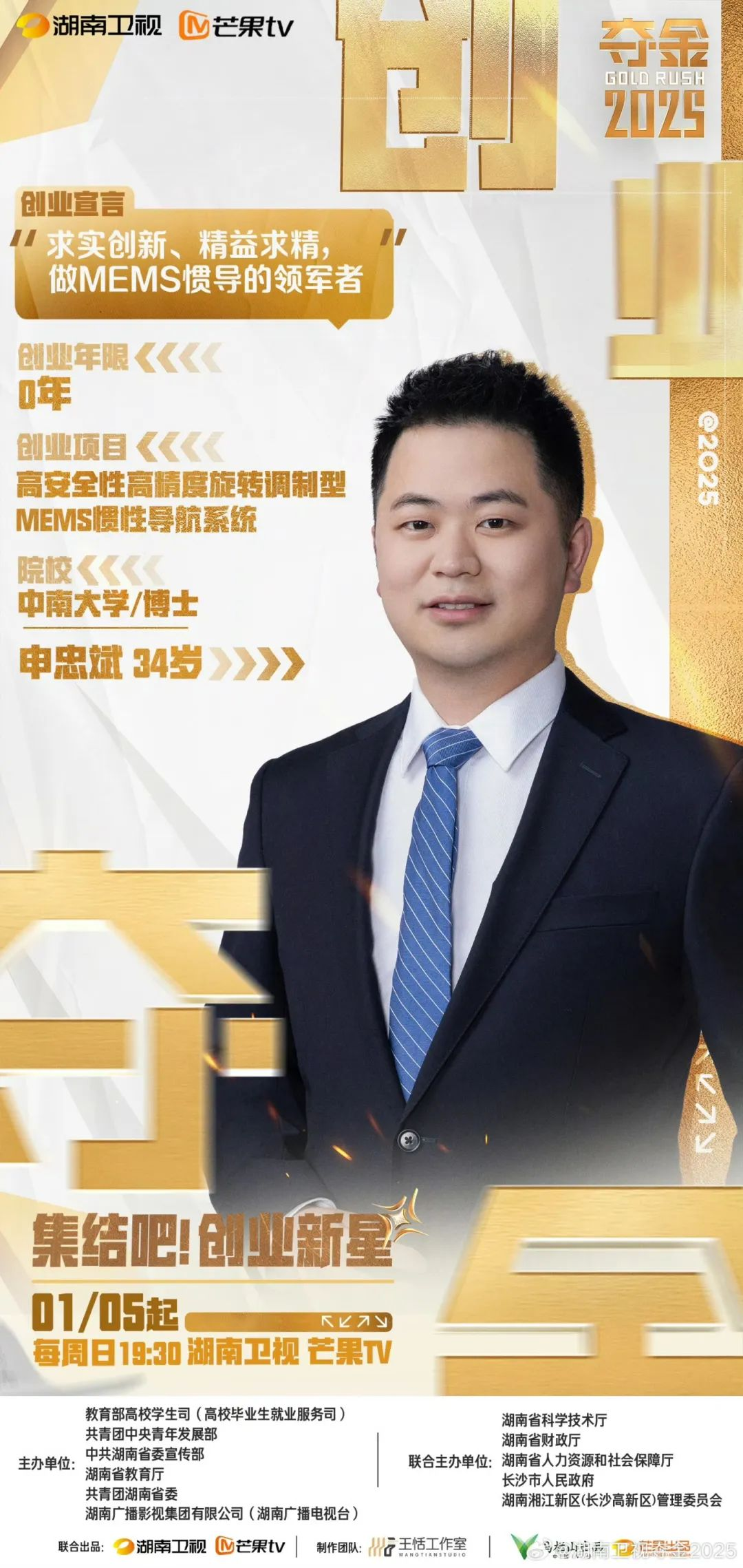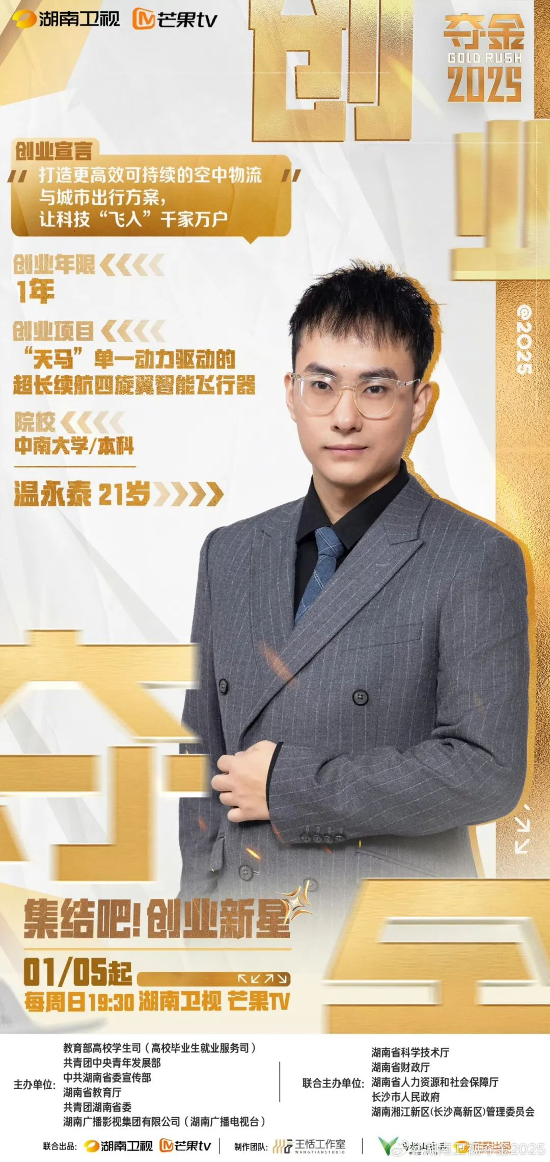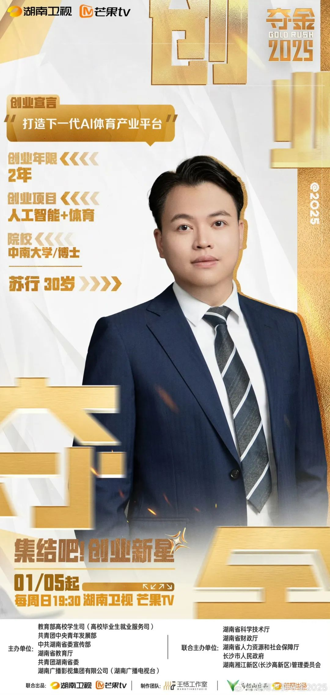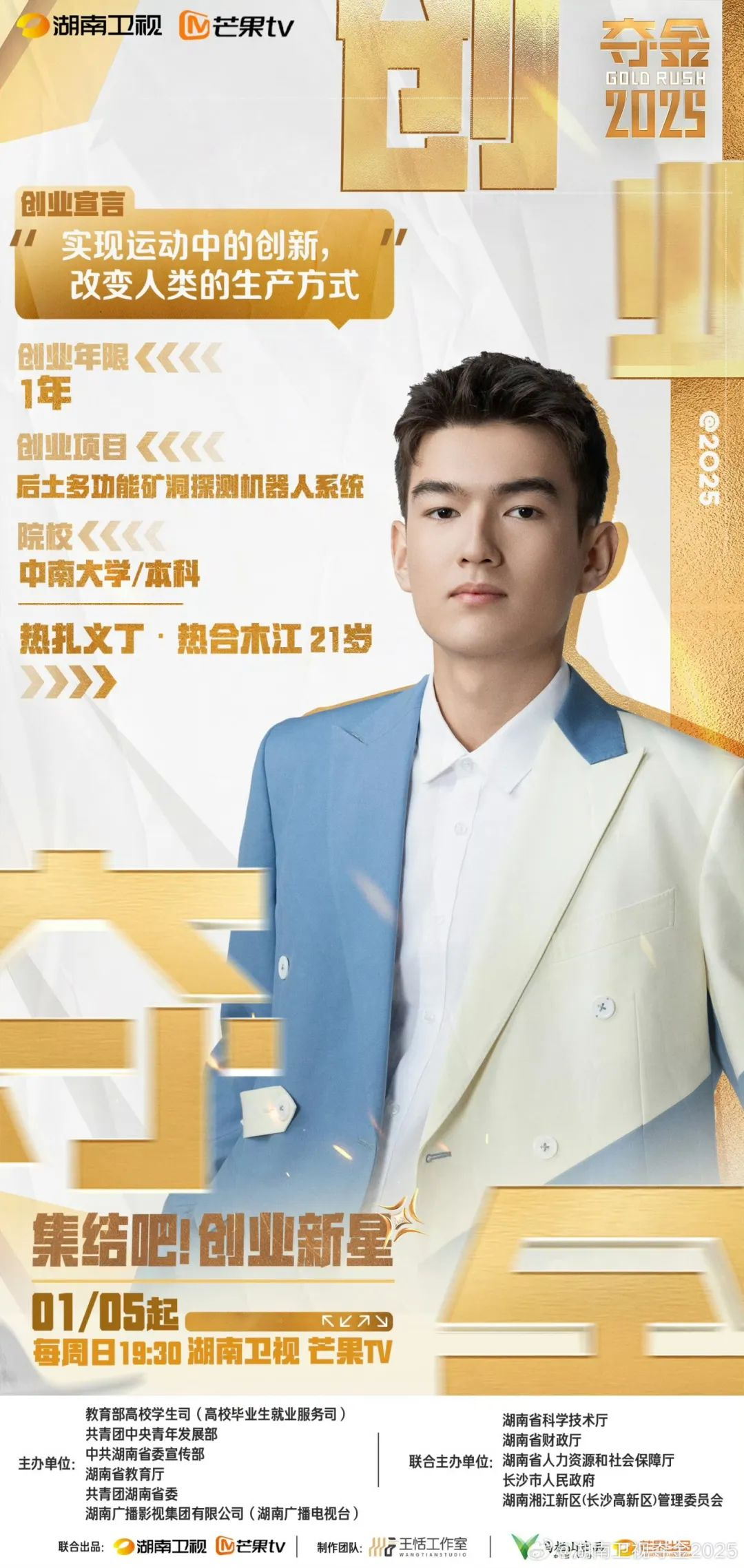 据悉,《夺金2025》由教育部高校学生司(高校毕业生就业服务司)、共青团中央青年发展部、中共湖南省委宣传部、湖南省教育厅、共青团湖南省委、湖南广播影视集团有限公司(湖南广播电视台)主办,湖南省科学技术厅、湖南省财政厅、湖南省人力资源和社会保障厅、长沙市人民政府、湖南湘江新区(长沙高新区)管理委员会联合主办,湖南卫视王恬工作室制作。自1月5日起每周日19:30在湖南卫视&芒果TV同步播出。