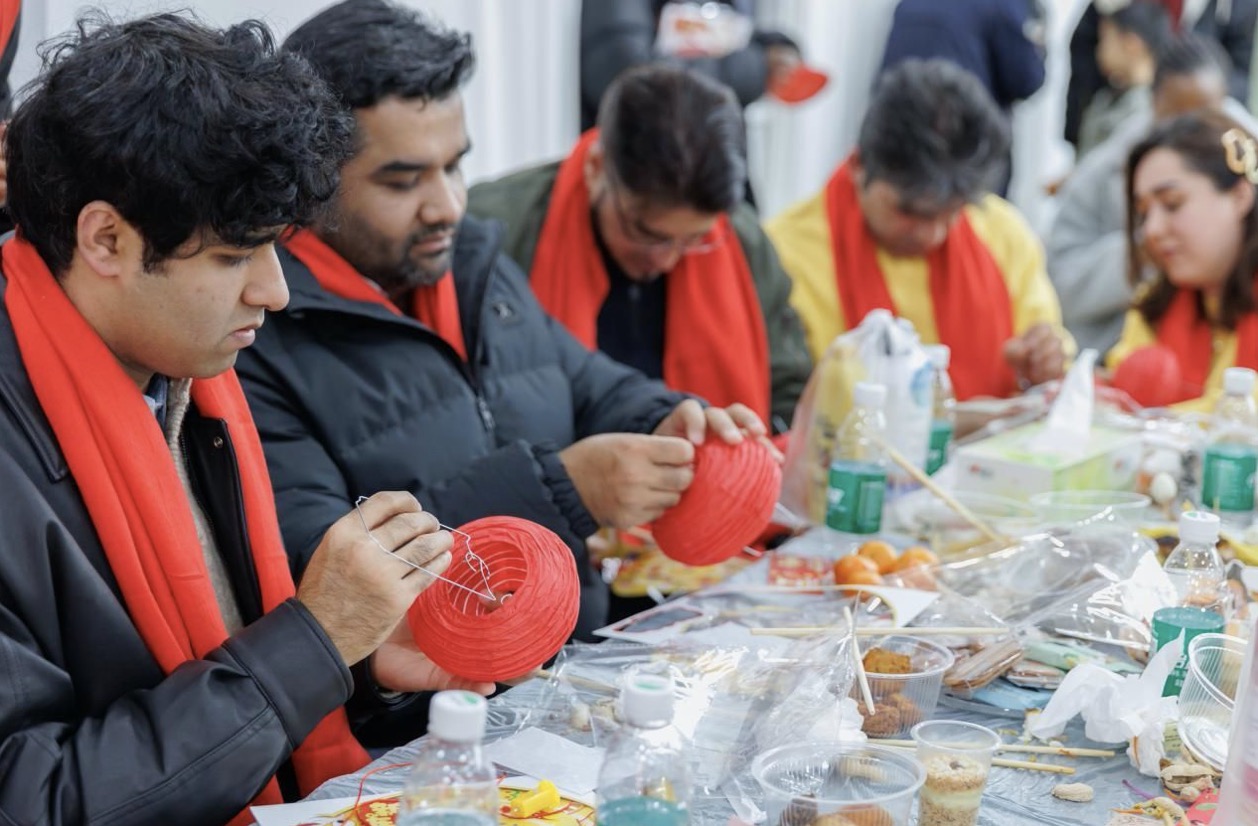 全体师生亲手制作蛇年灯笼,节日气氛热烈。