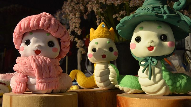 2025年1月21日,在河北省保定市望都县东关村林静面塑艺术工作室的蛇年面塑作品。