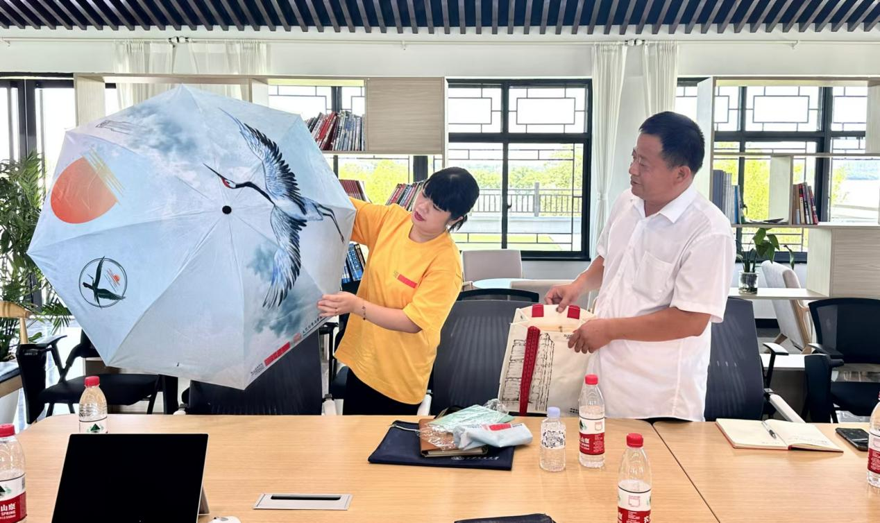 基于详尽的调查结果,方腾带领学生们设计并制作了一系列具有沙湾特色的文创产品,如带有“琴扬鹤舞”元素的晴雨伞、记录着赵抃故事的笔记本、象征君子品德的徽章等。整个过程中,学生们经历了从创意构思到成品推出的每一个环节,反复打磨作品,直到满意为止。这不仅是对专业技能的一次实战演练,更让他们深刻体会到了传统文化的魅力以及为社区服务的乐趣。