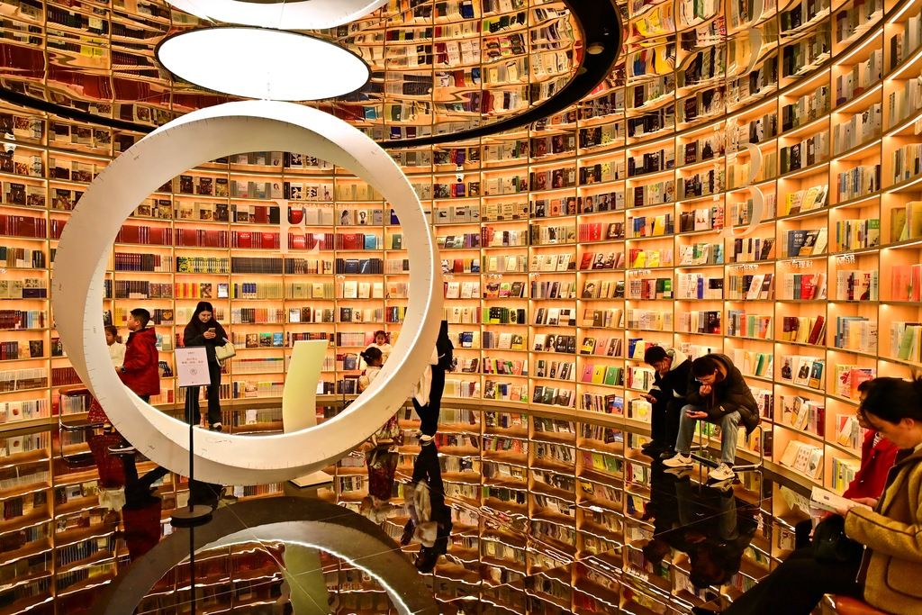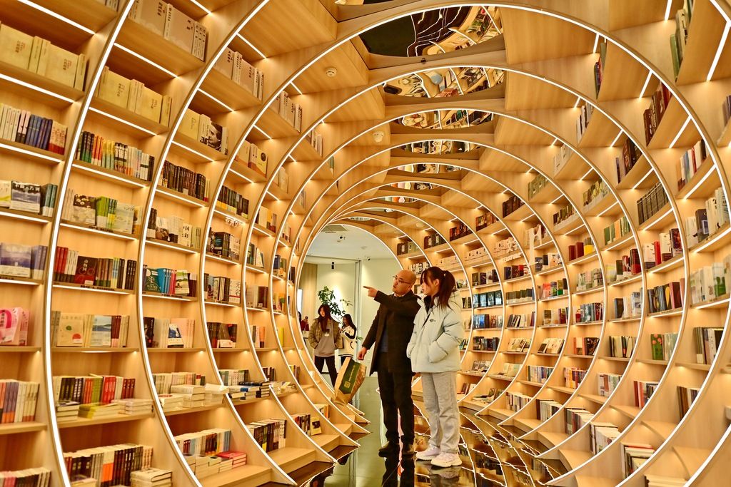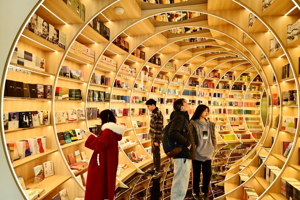 2025年1月29日,江西省赣州市章贡区的一家书店,许多读者在浏览阅读书架上的书籍。