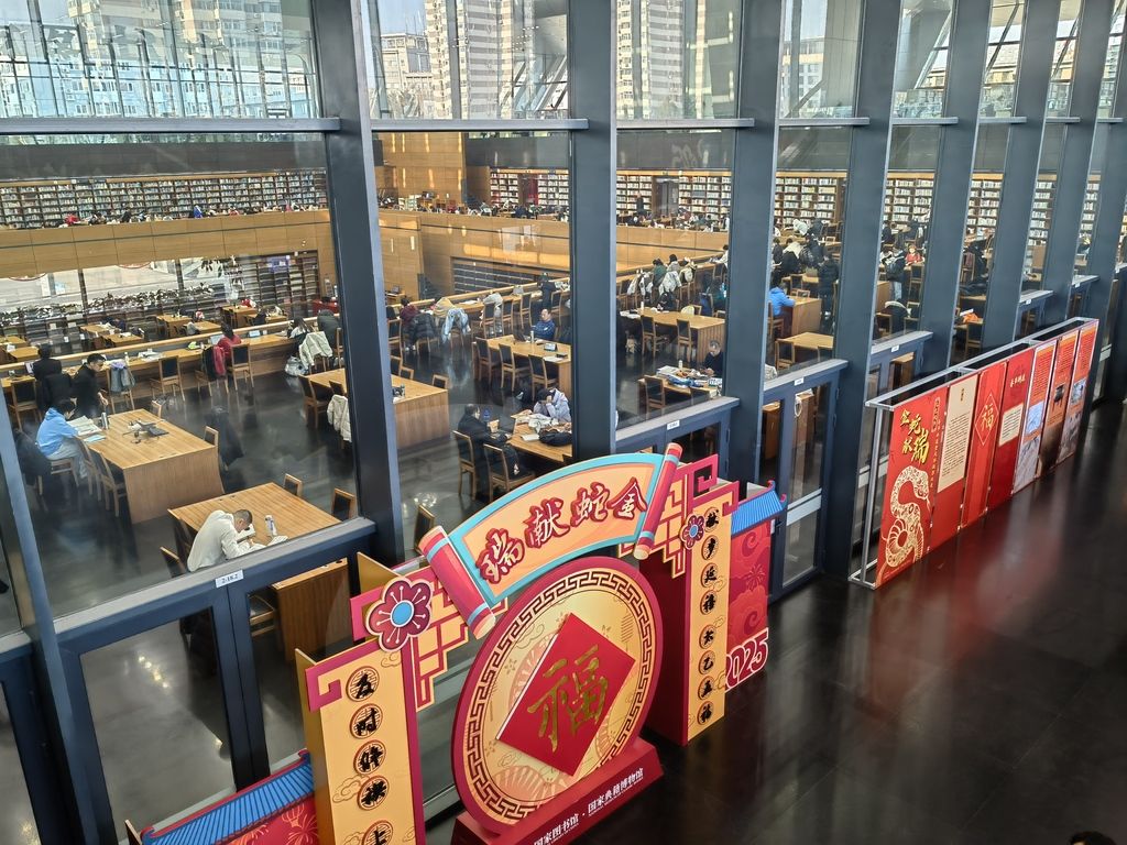 2025年1月29日,大年初一,在北京国家图书馆,许多市民选择到图书馆阅读图书,在浓浓的书香中过大年。