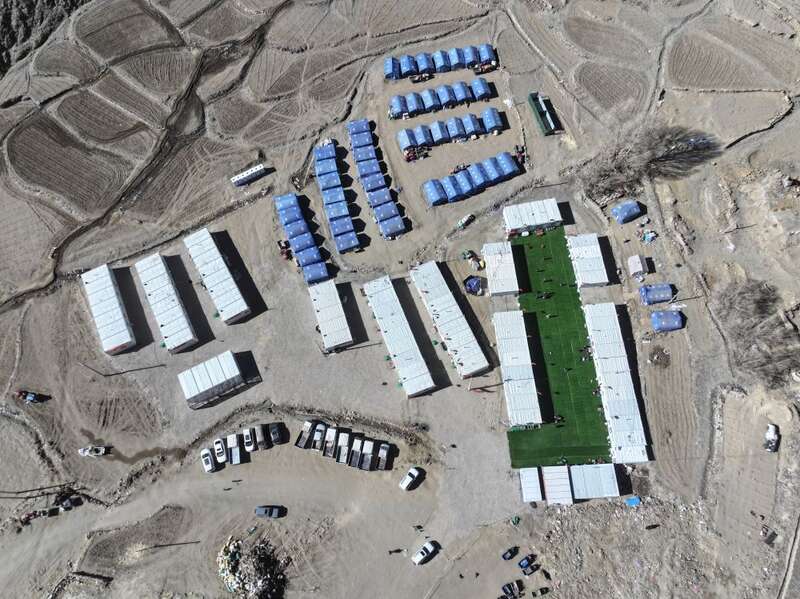 1月28日,定日县长所乡古荣村安置点,所有受灾群众已搬入板房(无人机照片)。新华社记者 洛卓嘉措 摄