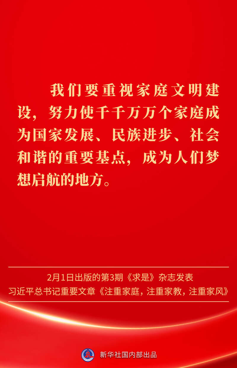 万家团圆共庆新春佳节之际,2月1日出版的第3期《求是》杂志发表习近平总书记重要文章《注重家庭,注重家教,注重家风》。为什么要注重家庭、家教、家风?如何做好家庭文明建设?习近平总书记这样阐述——