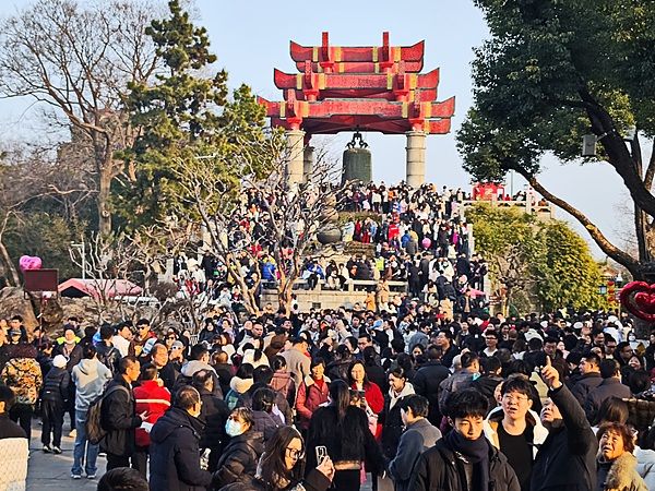 2025年2月3日,武汉,正月初六,各地游客登黄鹤楼,观赏武汉三镇美景,打卡2025央视春晚武汉分会场主场地。