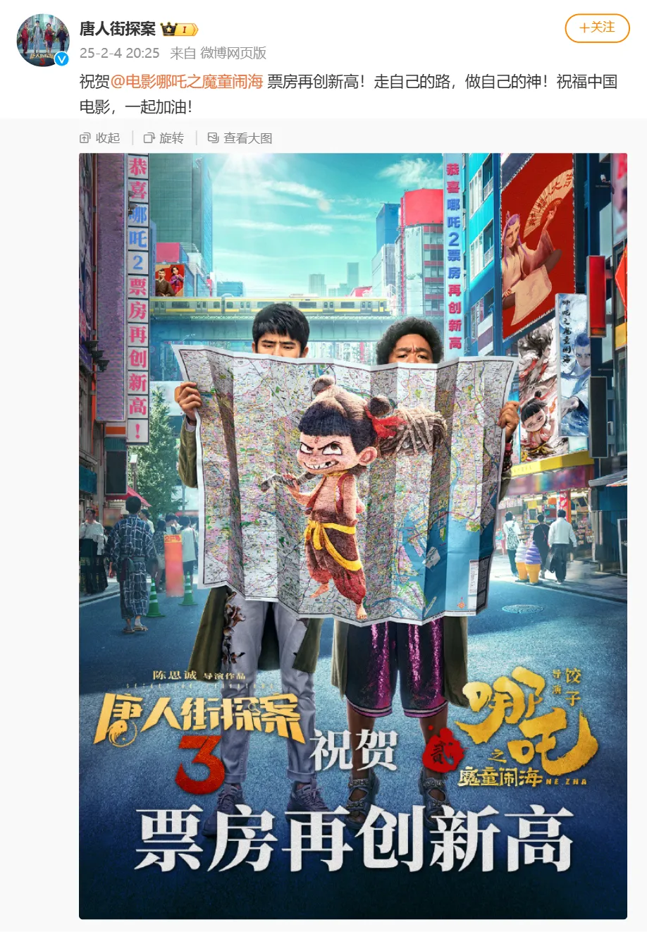 除了《你好,李焕英》,多部国产电影也纷纷给《哪吒之魔童闹海》发布贺图。