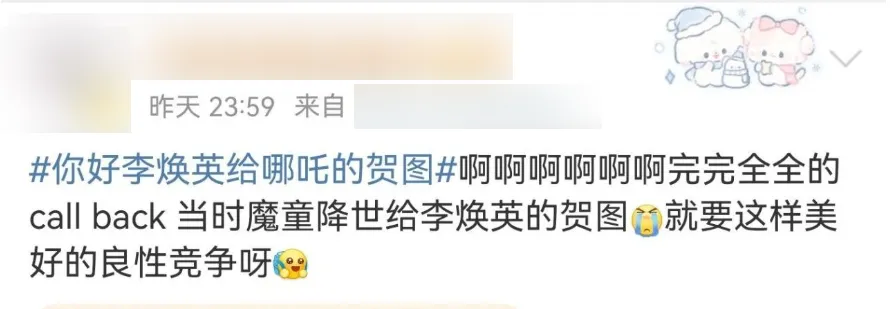 还有不少网友想起几年前《哪吒》第一部给《你好,李焕英》发的贺图。