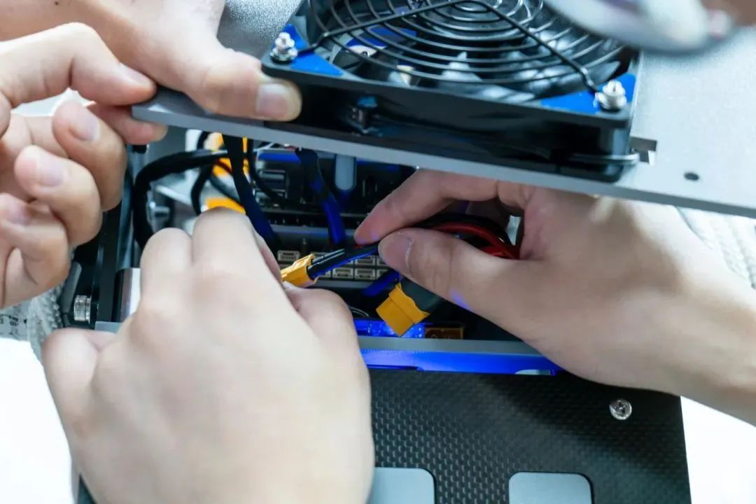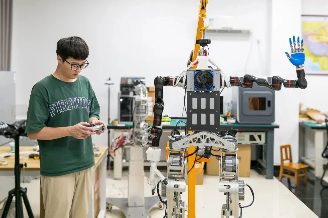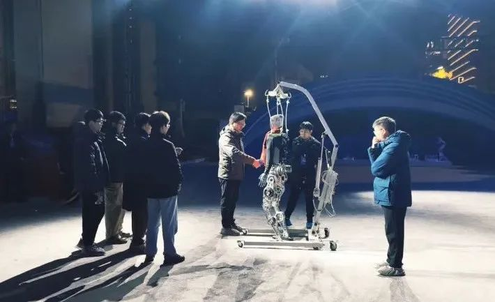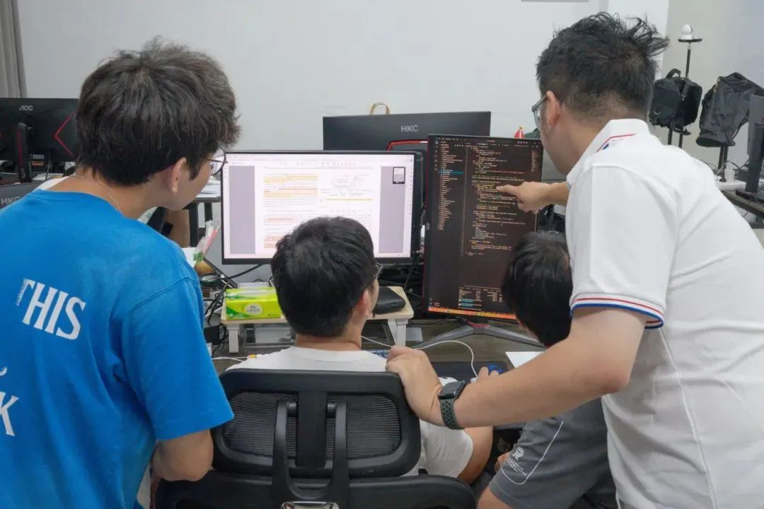 ▲凌晨2点,李老师、郭老师与团队成员在现场对机器人进行调试
