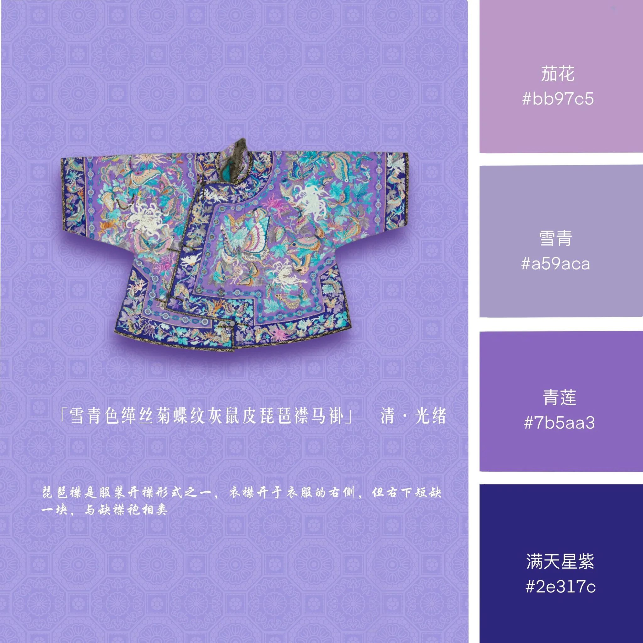 光绪年间的雪青色缂丝菊蝶纹灰鼠皮琵琶襟马褂