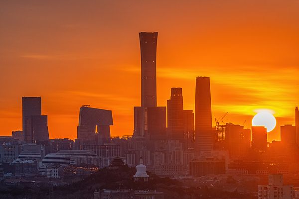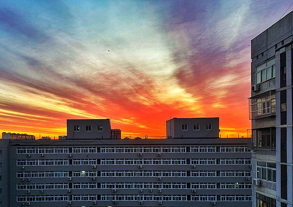 2025年2月19日,北京,绚丽朝霞扮靓天际。