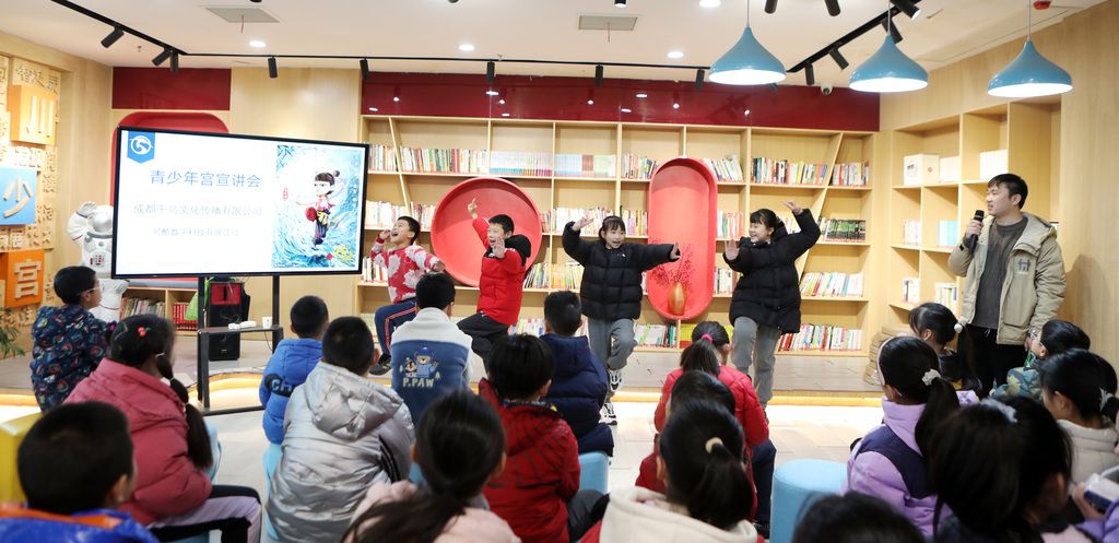 2025年2月23日,重庆,永川区青少年活动中心,李艳磊在课堂上分享《哪吒之魔童闹海》的幕后故事。