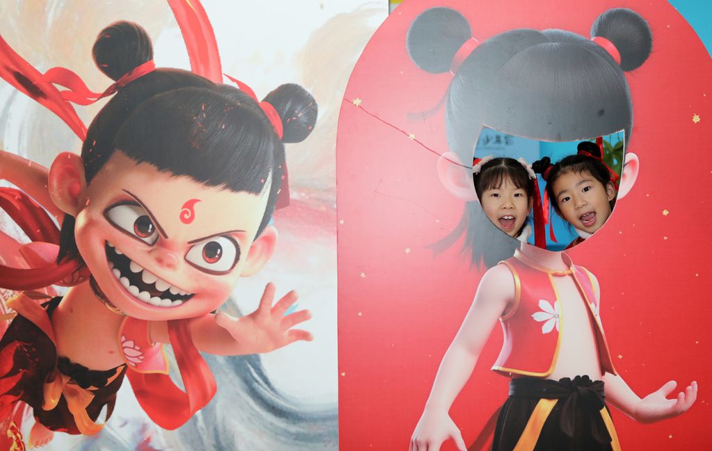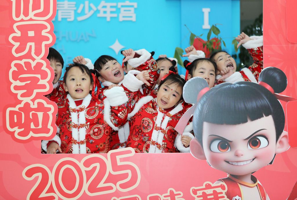 2025年2月23日,重庆,永川区青少年活动中心,同学们纷纷与“哪吒”合影。