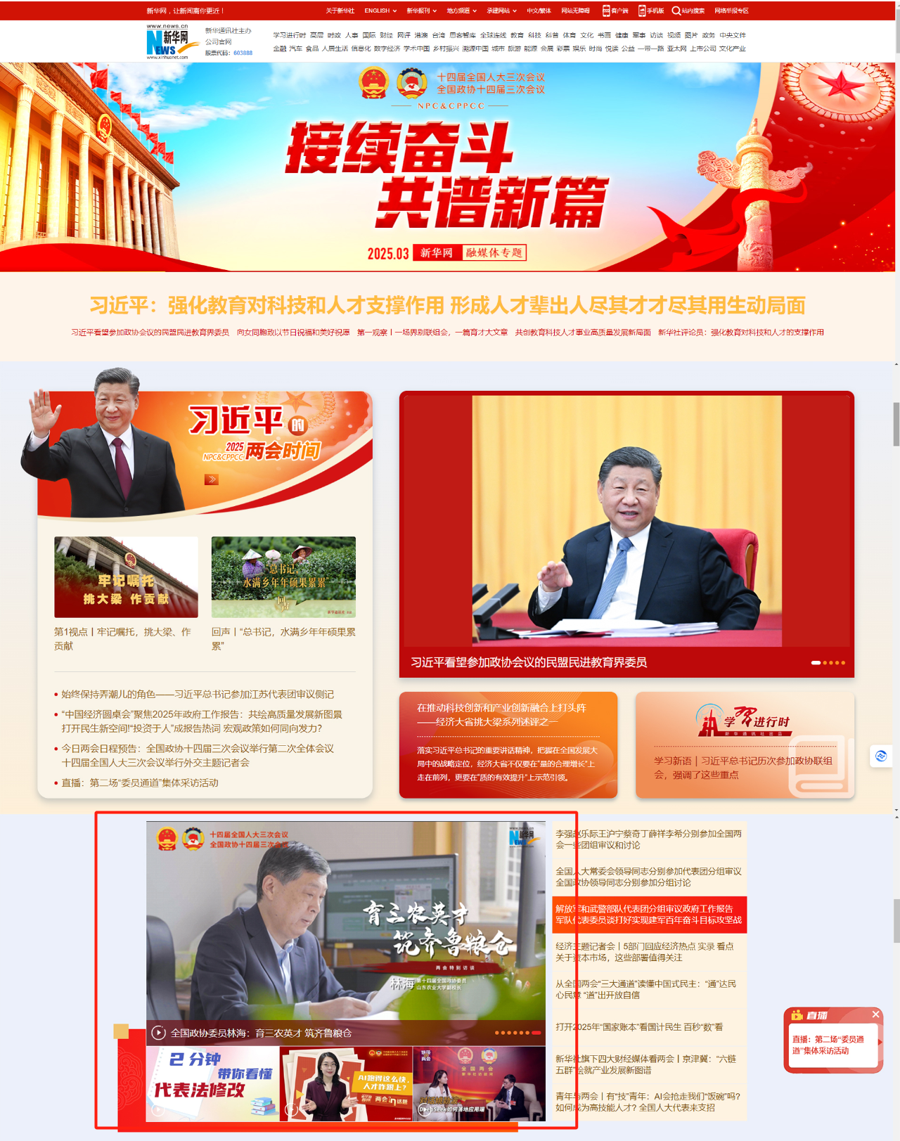 2025年全国两会召开之际,新华网“两会特别访谈”栏目对全国政协委员、山东农业大学副校长林海进行采访,访谈视频在新华网首页重点报道,同时在新华网客户端推荐版块头条、学习强国-视野-代表委员履职故事头条发布。