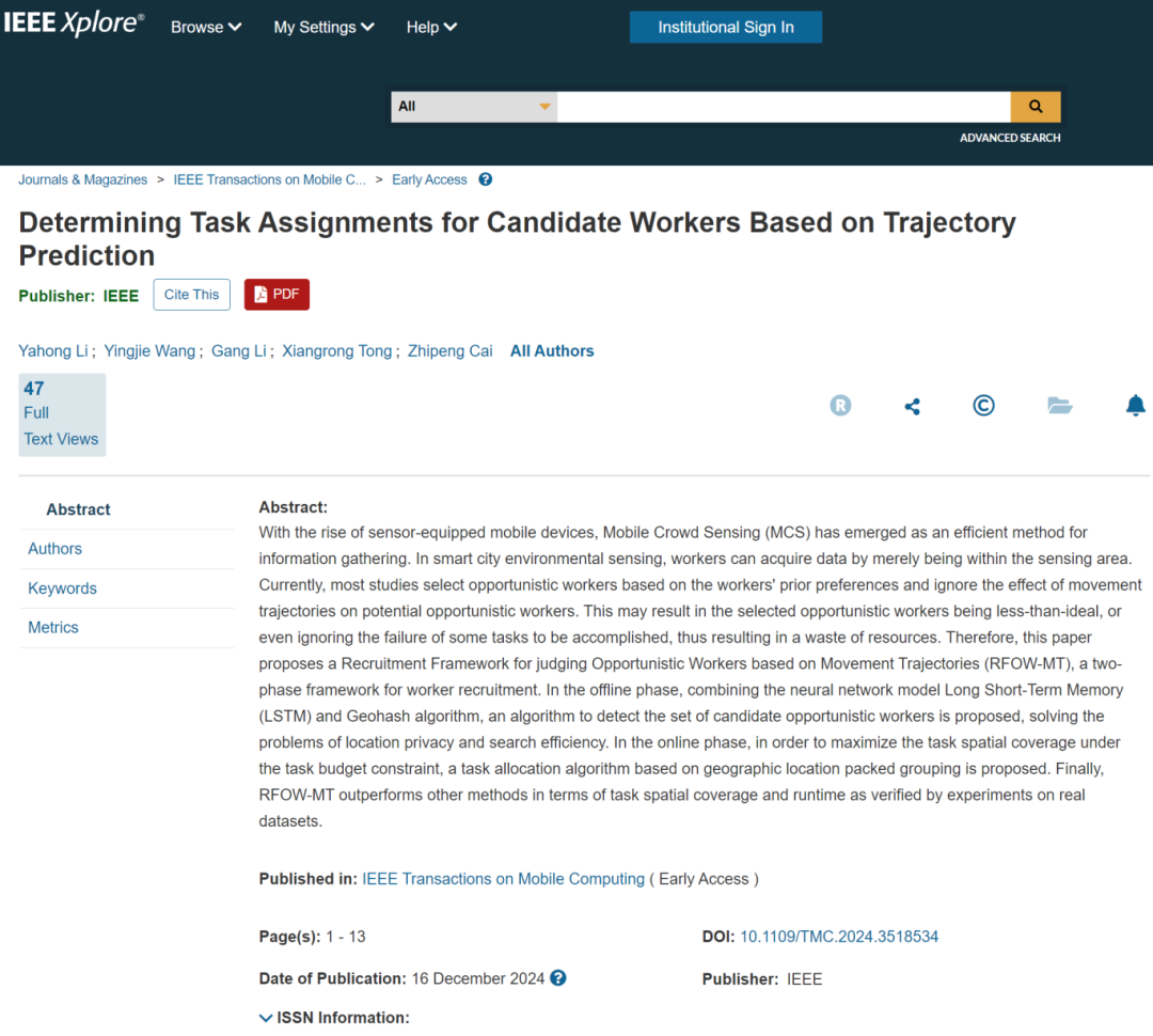 随着智能设备和物联网技术的普及,移动群智感知(MCS) 已成为城市环境感知、智能交通、公共安全等领域的重要信息采集手段。相比传统传感器网络,MCS 依靠众包工人的移动设备进行数据采集,不仅成本低,还具有更高的灵活性。