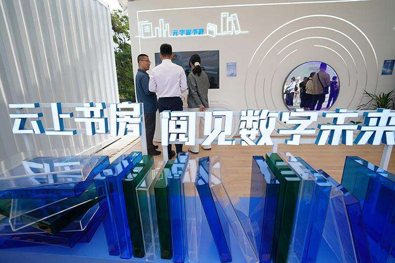 △2024年4月23日,云南昆明,市民在第三届全民阅读大会“十里书香长廊·春城书市”上体验数字阅读。