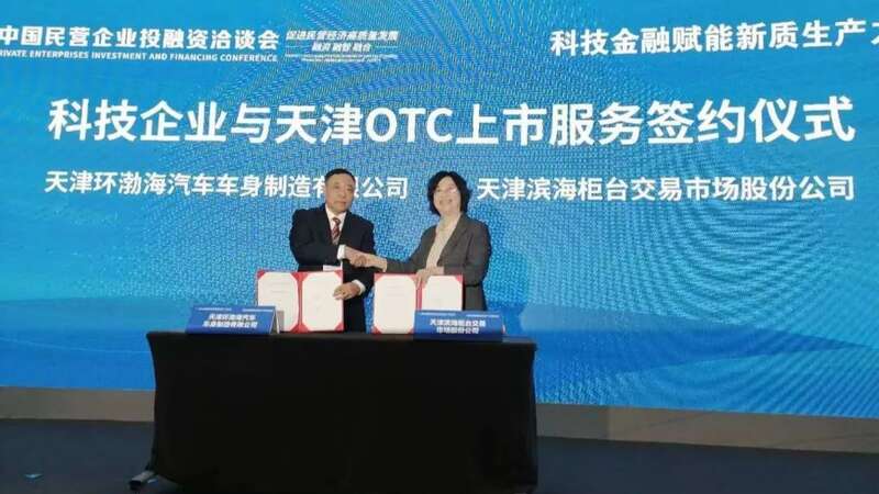 2024年底,2024中国民营企业投融资洽谈会(以下简称“民洽会”)成功举办。在民洽会“科技企业与天津OTC上市服务签约仪式”上,作为首家登场的企业代表,天津环渤海汽车车身制造有限公司与天津OTC在现场嘉宾的共同见证下,正式签署上市服务合作协议,标志着环渤海汽车未来将获得天津OTC全方位、深层次的专业服务赋能,朝着上市目标又迈进了一大步。