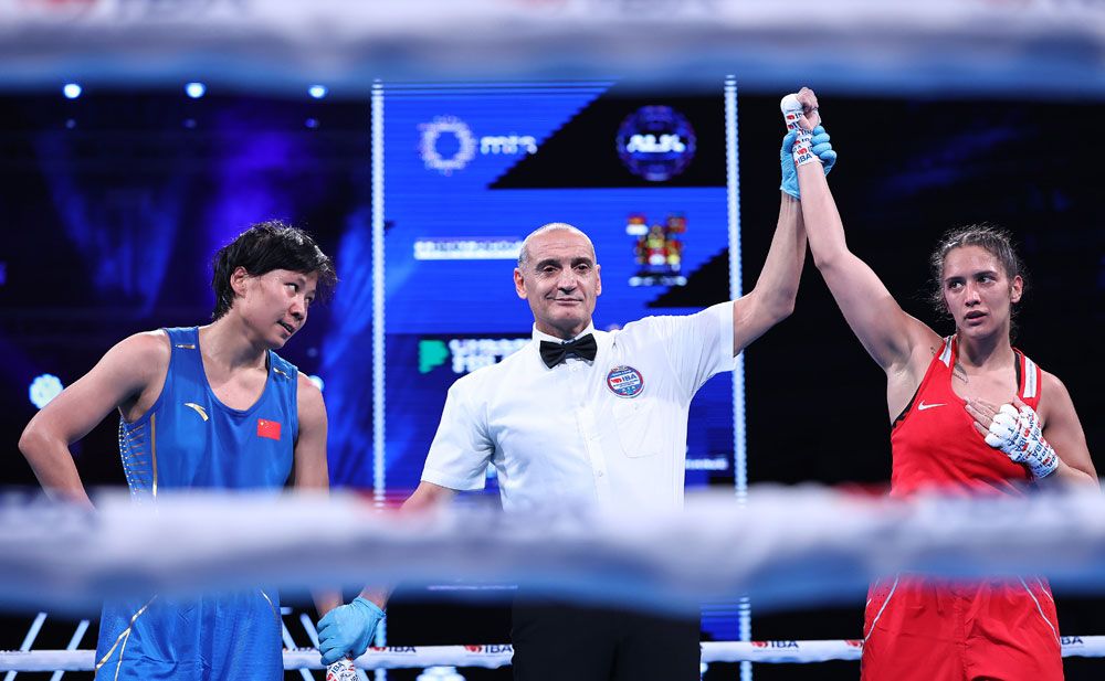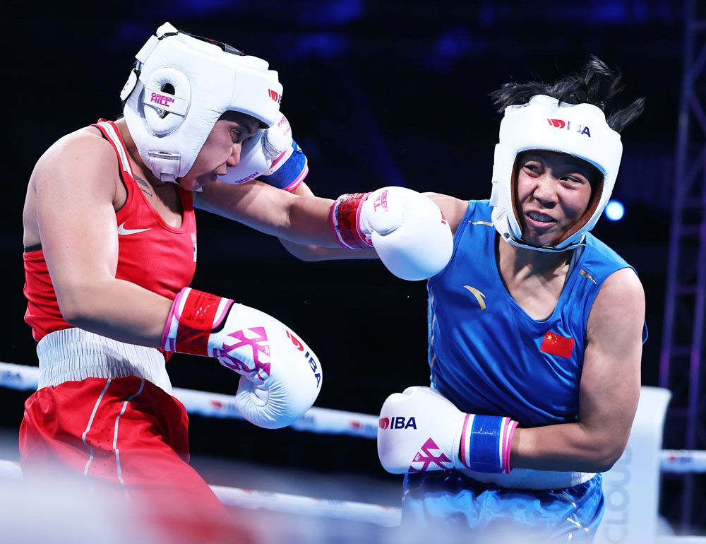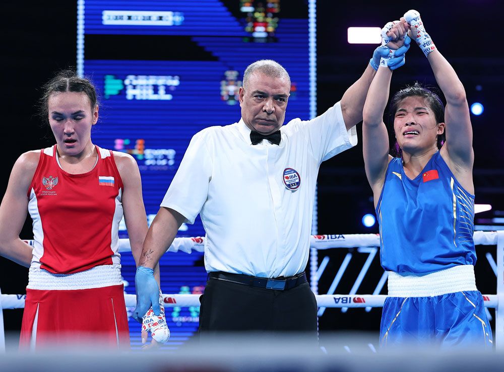 中国队首先亮相的是48公斤级的钟雪云,她的对手是本届世锦赛48公斤级的头号种子、22岁的亚洲名将哈萨克斯坦的福齐洛娃・法尔佐娜,她两年前就开始参加亚洲U22的比赛,是2022-2024年连续三届亚洲U22的冠军。尽管钟雪云拼命出拳,但无论是速度还是对抗能力福齐洛娃・法尔佐娜都更胜一筹,她最终获得了比赛的胜利。钟雪云止步48公斤级的16强。