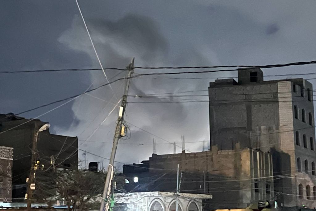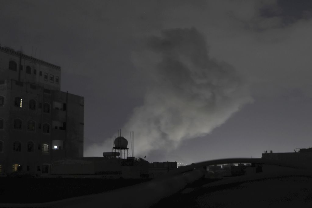 当地时间2025年3月15日,也门萨那,烟雾从也门萨那一处被美国空袭打击的地点升起。