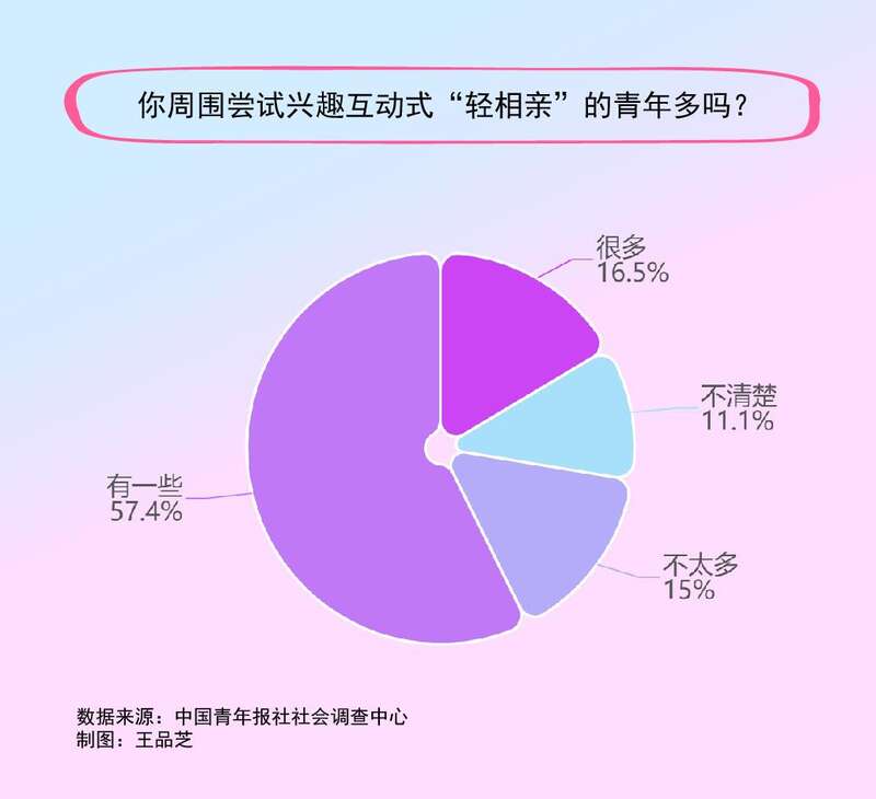 调查中,73.9%的受访者表示周围有尝试兴趣互动式“轻相亲”的青年,其中16.5%的受访者表示有很多。