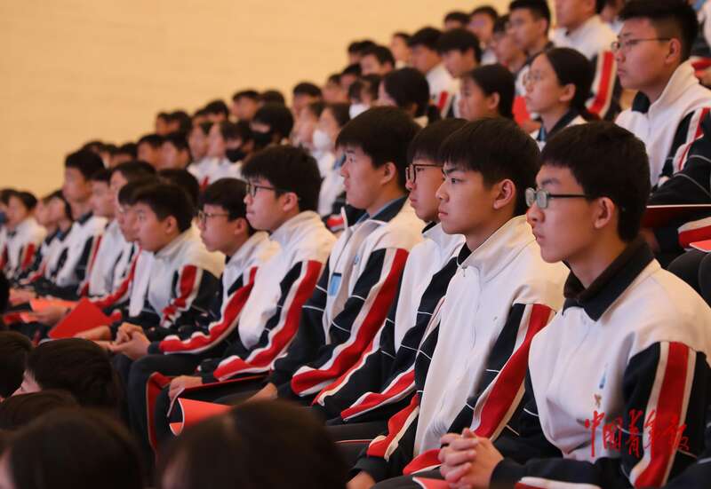 4月3日,北京,中国共产党历史展览馆西广场,“礼赞民族英雄、弘扬抗战精神”教育活动启动仪式现场,来自北京交大附中的学生代表。中青报·中青网记者 陈剑/摄