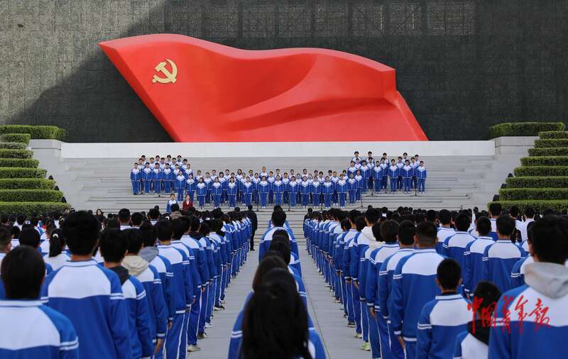 4月3日,北京,中国共产党历史展览馆西广场,“礼赞民族英雄、弘扬抗战精神”教育活动启动仪式现场。中青报·中青网记者 陈剑/摄