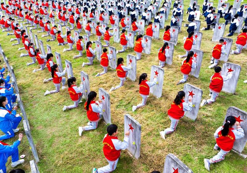 清明节来临之际,300名青少年代表身着不同颜色的校服,齐聚川陕革命根据地红军烈士陵园,开启了一堂“纪念碑下的思政课”,通过献花、默哀、描红等方式,为埋葬在这里的2万多名红军烈士寄去哀思。