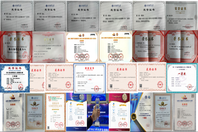 “科创竞赛是检验成果的试金石”,他投身实践,积极将科研成果应用于现实需求,组队带领其他同学参与科创竞赛。他累计获得中国机器人及人工智能大赛全国一等奖等省部级以上奖项16项(以队长身份获奖11项)。为备战中国TRIZ杯大学生创新方法大赛,他们运用矛盾矩阵、物场分析等创新方法,对机器人结构与控制算法进行11次迭代优化,最终凭借“基于TRIZ理论的绳驱动并联吊装减摇机器人”项目斩获全国一等奖(总排名第三),创学校历史最佳成绩,创新成果入选中国创新方法大赛全国示范案例。